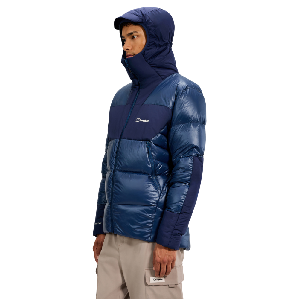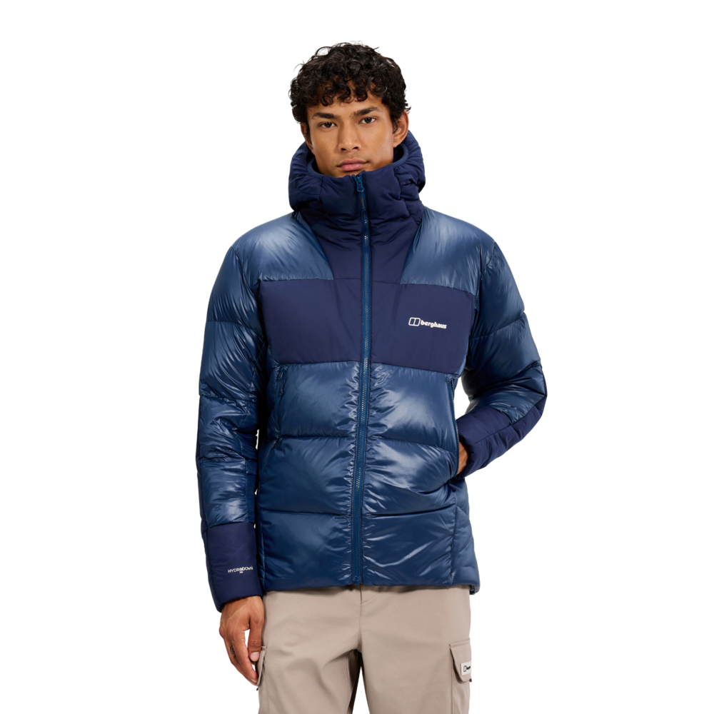 Fully featured down jacket packed with features to keep you warm in the coldest climates. Filled with water resistant Berghaus Hydrodown and loaded with handy features, the jacket delivers duvet-warmth as you stride on. And the distinctive high shine and matter face will stand out, wherever you go.