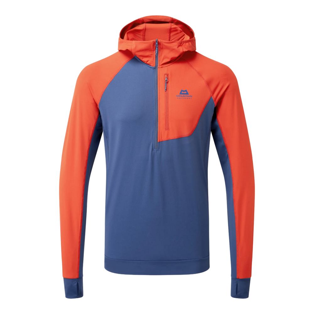 A versatile stretch hooded top for keeping the sun and wind at bay. From the sea-sprayed cliffs of Pabbay to the iconic spires of Patagonia and golden Chamonix granite, the Aiguille Hooded Top is a quick-drying and breathable technical layer for long mountain days. The durable 175g stretch jersey fabric offers good abrasion resistance and some wind protection on belays or ridgelines. In contrast, the soft fabric ensures next-to-skin comfort and efficient moisture management during demanding approaches, run-out cruxes and alpine tours. The high neck and close-fitting hood provide invaluable sun protection on glacier approaches or south-facing walls, and the double-layer cuffs with integrated thumb loops offer extra warmth at windswept belays. With a slim fit, the Aiguille layers well beneath a shell or insulating layer, fitting neatly under a harness without bagging out and obscuring access to crucial protection.
